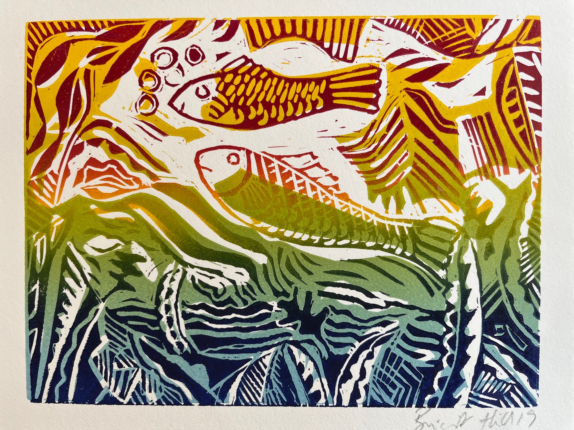 Four colour linocut, edition of 2, 1/2 and 2/2.