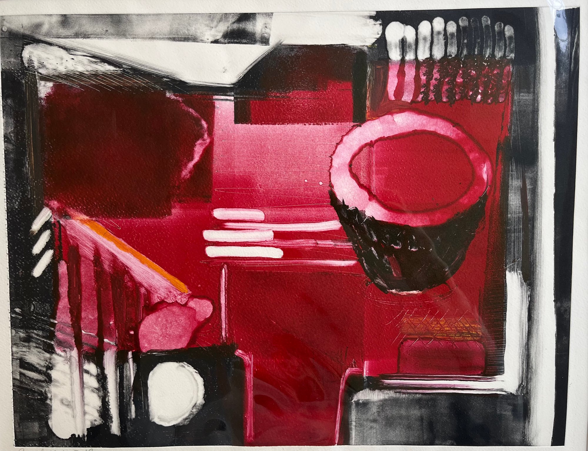 Pink monotype (framed in a mount)
